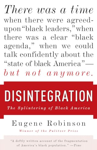 The African American population in the United States has always been seen as a single entity: a “Black America” with unified interests and needs. In his groundbreaking book, Disintegration, Pulitzer-Prize winning columnist Eugene Robinson argues that over decades of desegregation, affirmative action, and immigration, the concept of Black America has shattered. Instead of one black America, now there are four: • a Mainstream middle-class majority with a full ownership stake in American society; • a large, Abandoned minority with less hope of escaping poverty and dysfunction than at any time since Reconstruction’s crushing end; • a small Transcendent elite with such enormous wealth, power, and influence that even white folks have to genuflect; • and two newly Emergent groups—individuals of mixed-race heritage and communities of recent black immigrants—that make us wonder what “black” is even supposed to mean.